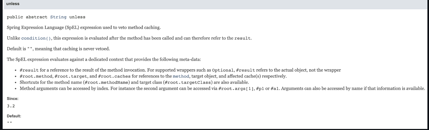document를 찾아보니 결과값(#result)을 caching 조건에 사용하려면