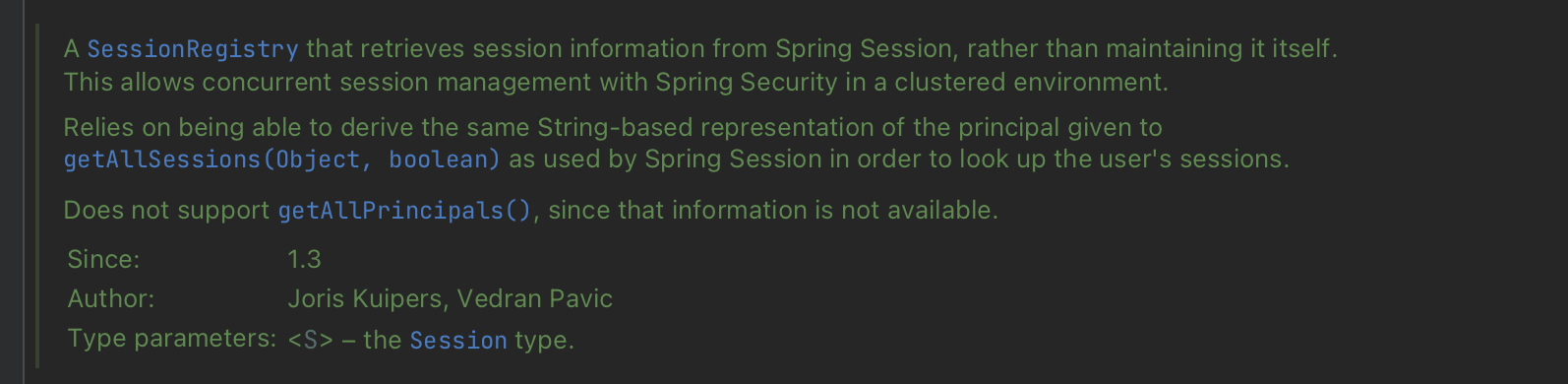clustered 환경에서 spring session 으로부터 session 정보를 가져오도록 SpringSessionBackedSessionRegistry bean 을 등록함